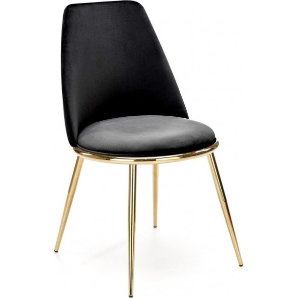 Eetkamerstoel met fluwelen stoffen bekleding. Gechromateerd stalen onderstel.