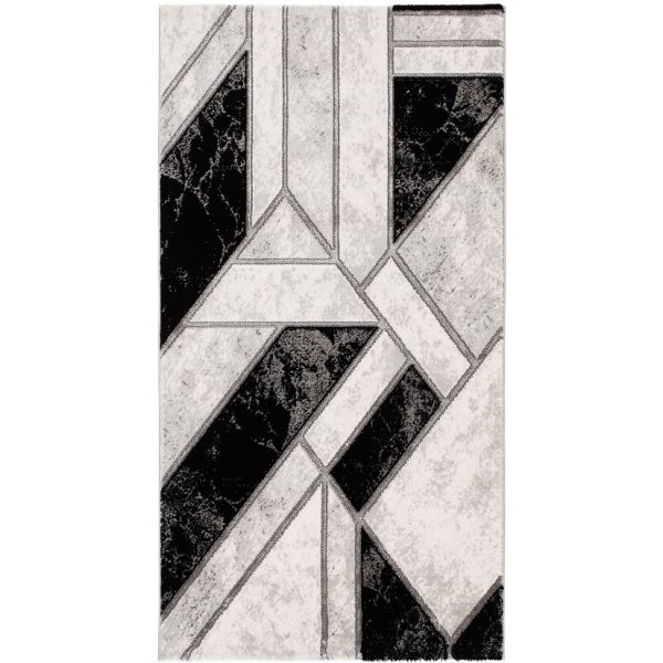 Het patroon van het tapijt doet denken aan marmer omdat het in verschillende wit/grijze tinten verschuift en omdat het donkerdere delen heeft die het tapijt diepte geven. Het patroon van het vloerkleed is gemaakt van Polyester, wat een mooie glans geeft als er licht op valt.