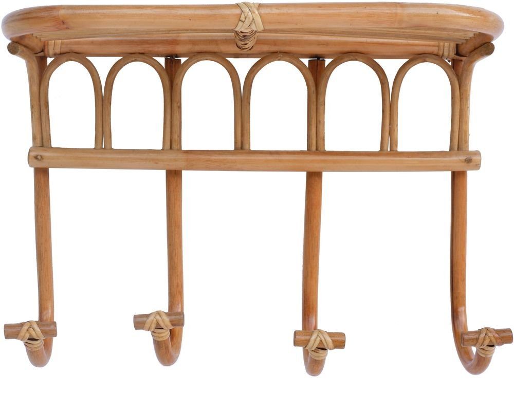 Moderne en minimalistische hoedenplank van duurzaam en slijtvast naturelkleurig rotan. De hoedenplank heeft 4 haken en een plank.