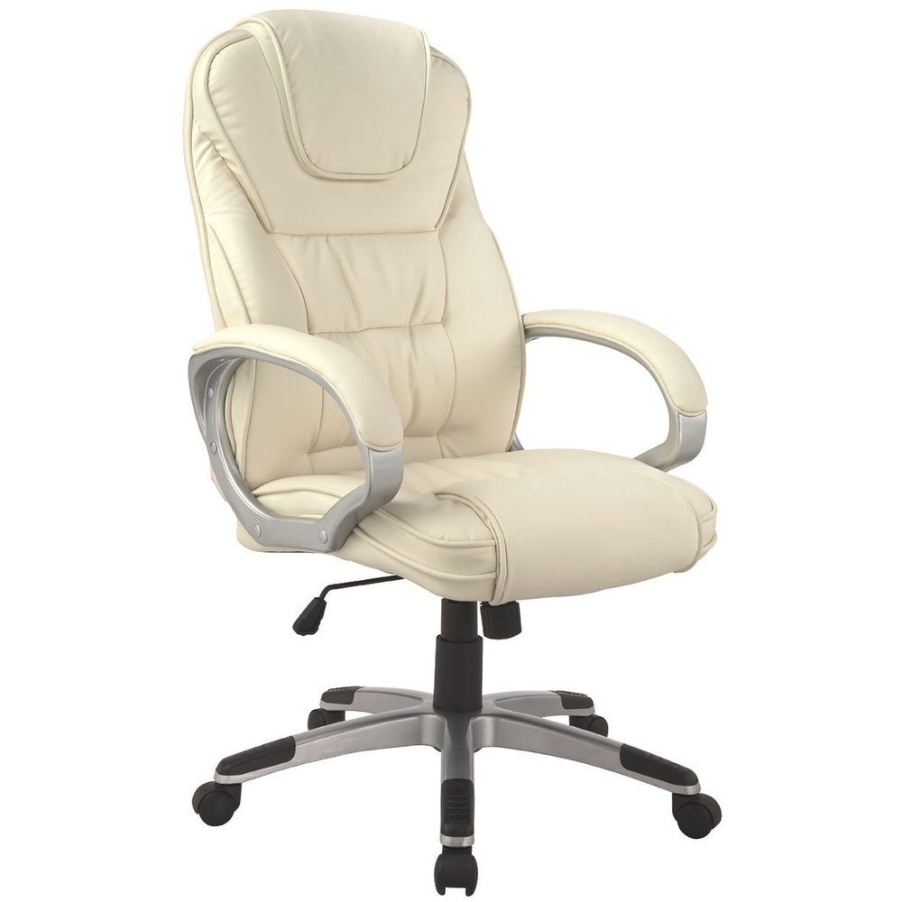 Een stijlvolle bureaustoel met een modern design. De stoel is gemaakt van metaal en kunststof, met een zeer aangename kunstlederen bekleding voor maximaal comfort. De stoel is voorzien van een kantelfunctie en is eenvoudig in hoogte verstelbaar met behulp van de hendel onder de zitting. De stoel is ook gemakkelijk te verplaatsen dankzij de wieltjes op het steronderstel.