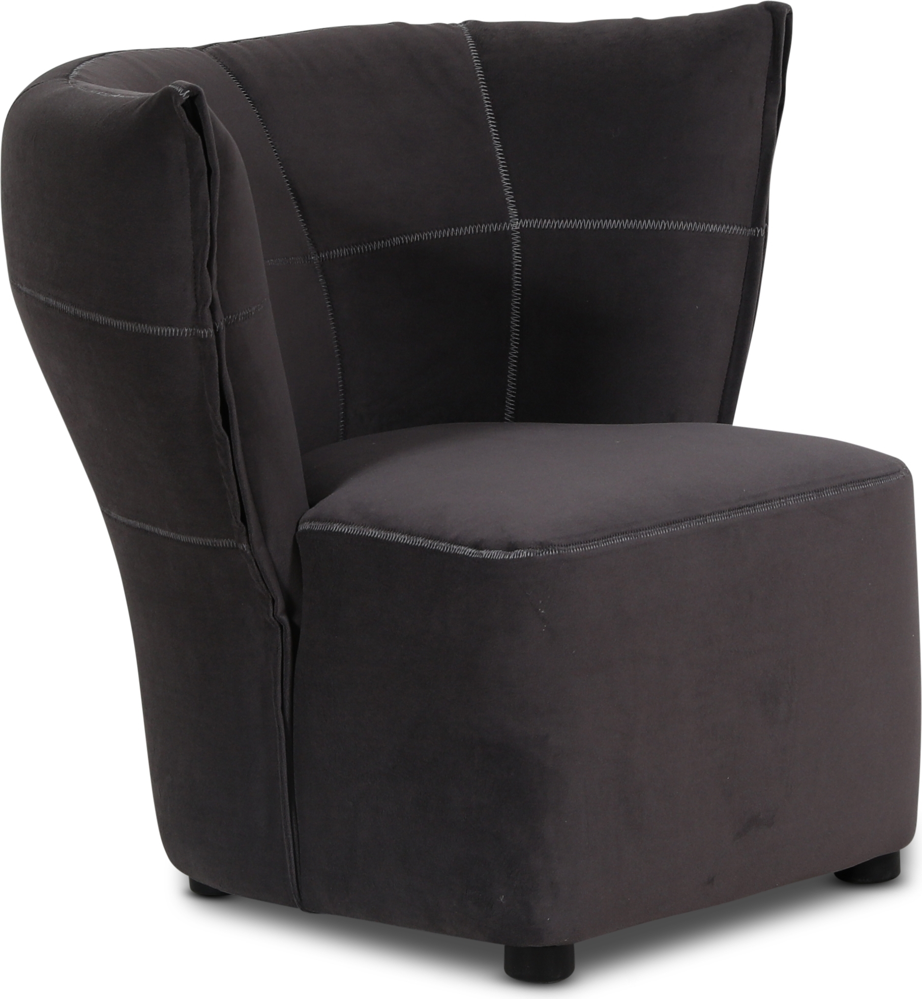 De fauteuil is bekleed met zacht koudschuim voor maximaal comfort. Contrasterende stiksels als brutaal detail op de rugleuning van de fauteuil.