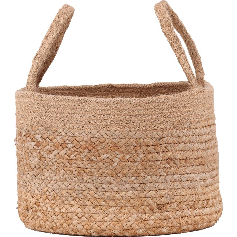 Een opbergmand van gevlochten jute met praktische handvatten en meerdere gebruiksmogelijkheden. Als de verbeelding het toelaat; gebruik als opberger voor dekens, handdoeken of als pot voor je groene planten. De manden zijn echter niet waterdicht, dus plaats de planten eerst in een vochtbestendige binnenpot.