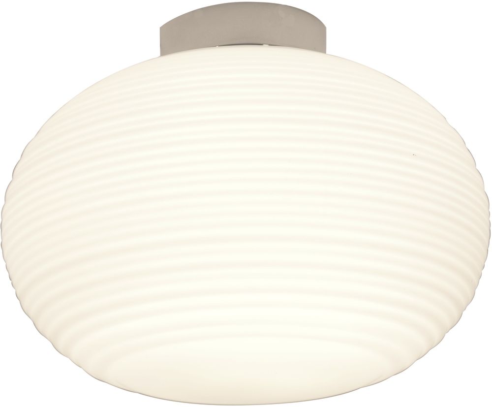 Plafondlamp van wit glas en verchroomd metaal. Eenvoudige plafondmontage.
