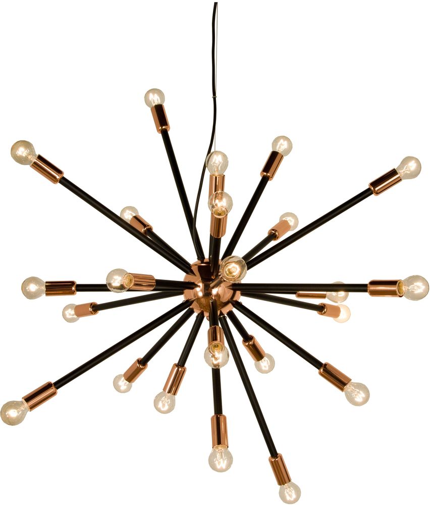 Plafondlamp in metaal met zwart en koperen design. Eenvoudige plafondophanging.