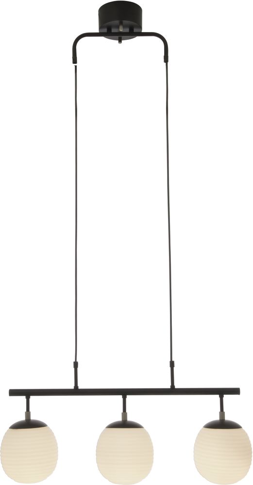 Plafondlamp in zwart metaal en opaalwit glas. Makkelijk aan het plafond te hangen.