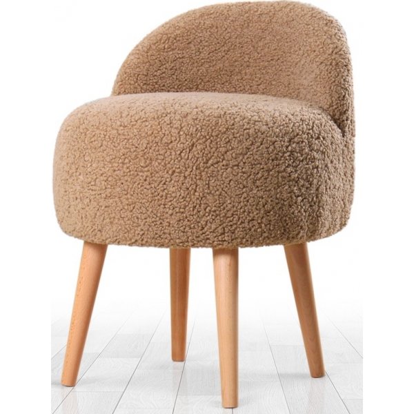 Poef gemaakt van hout. Gekleed in imitatiebont. Schuim stoppen.