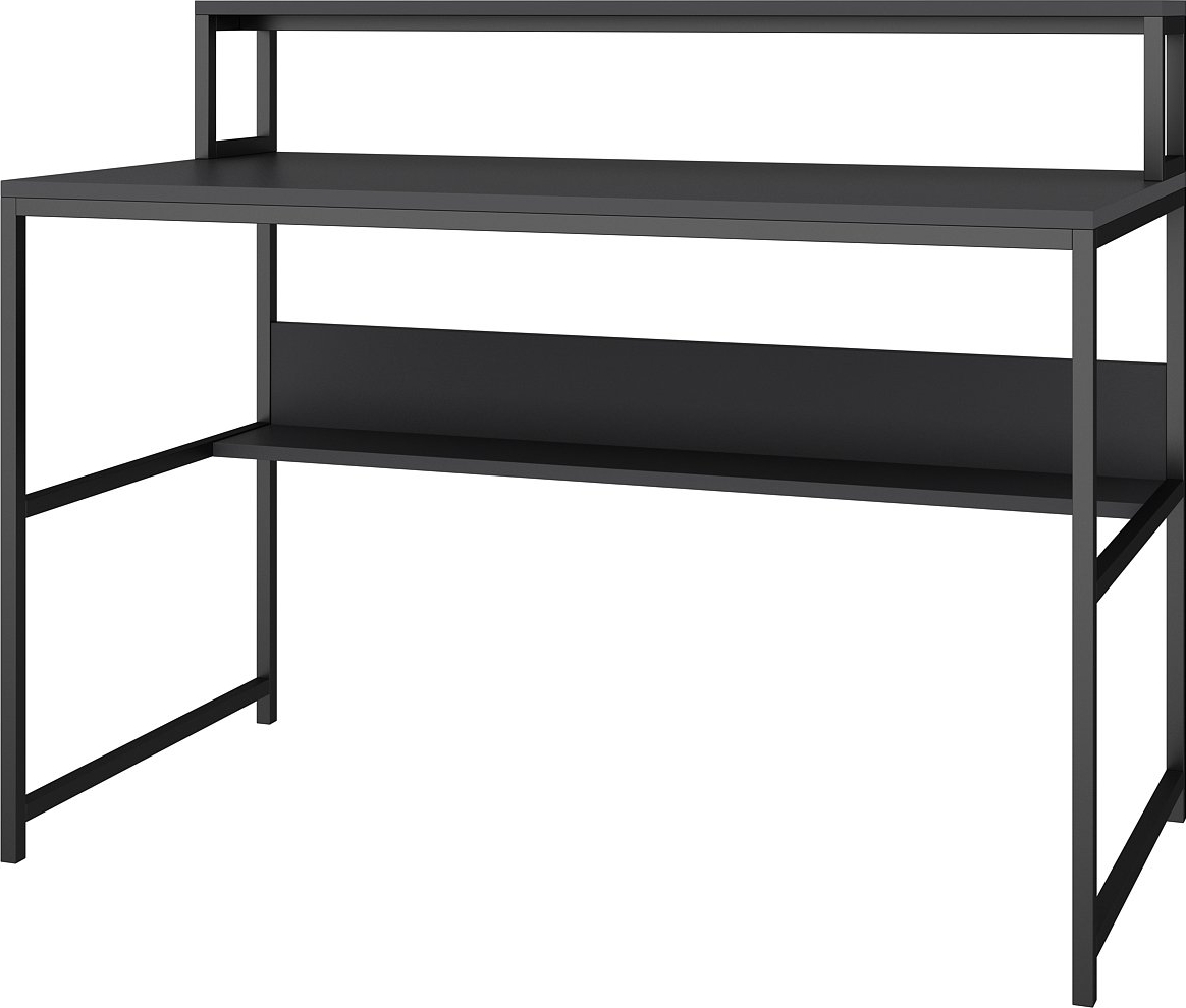Bureau van metaal met een tafelblad van gemelamineerde spaanplaat.