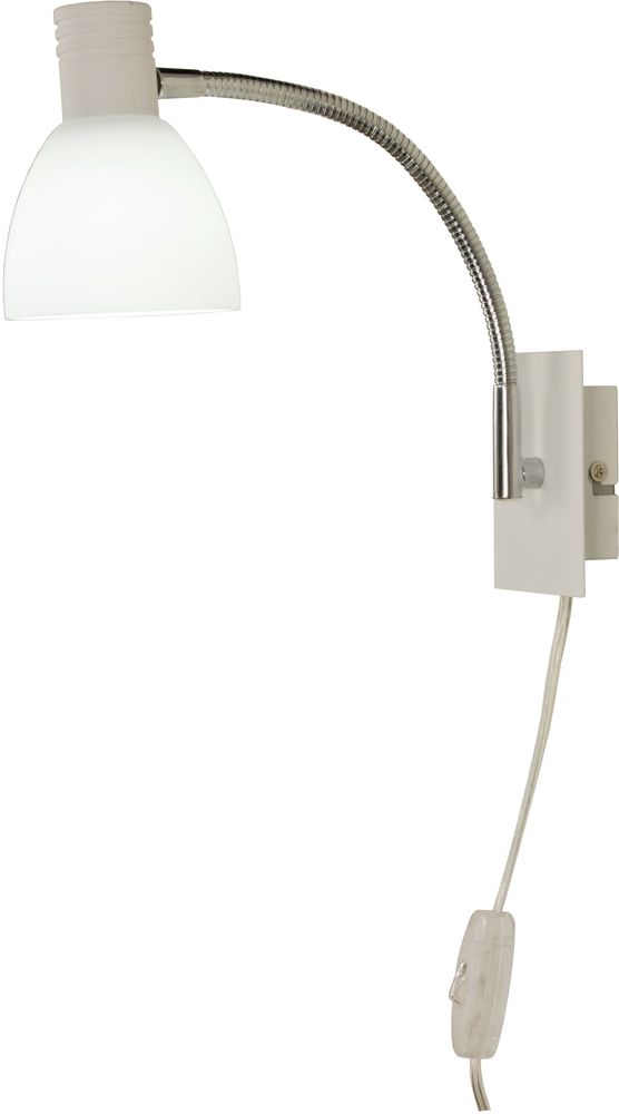 Wandlamp in wit en chroom design. Makkelijk aan de muur te bevestigen. Stroomschakelaar op de kabel.