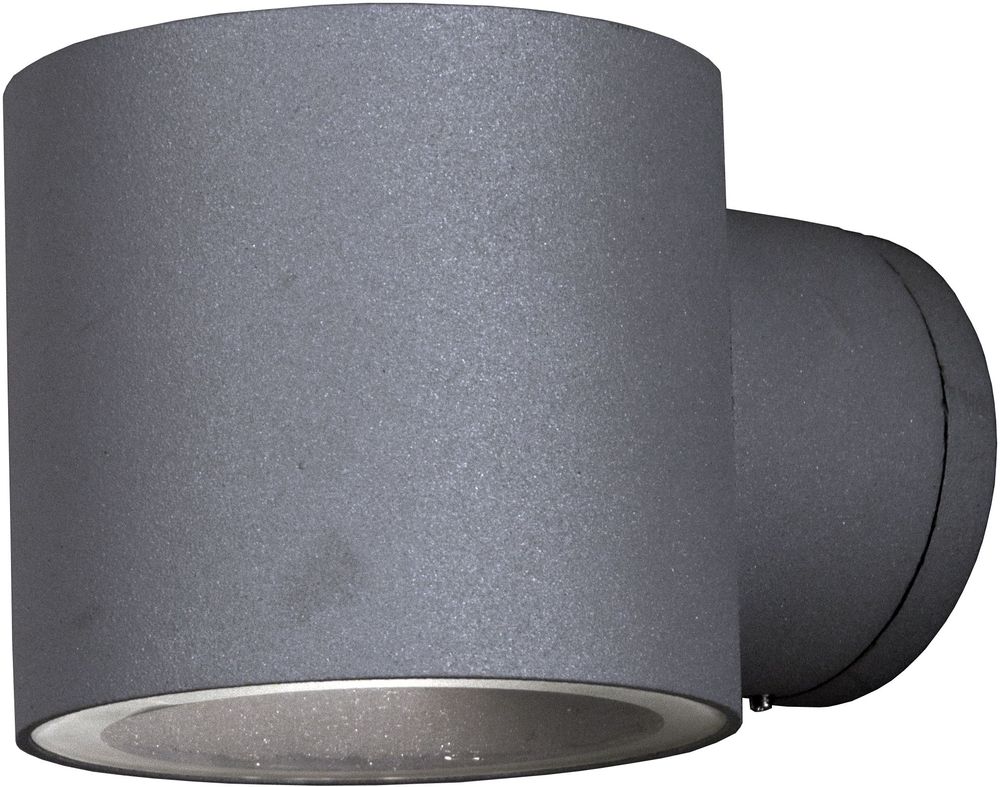 Buitenwandlamp in grijs metaal. Eenvoudig aan de huismuur te monteren.