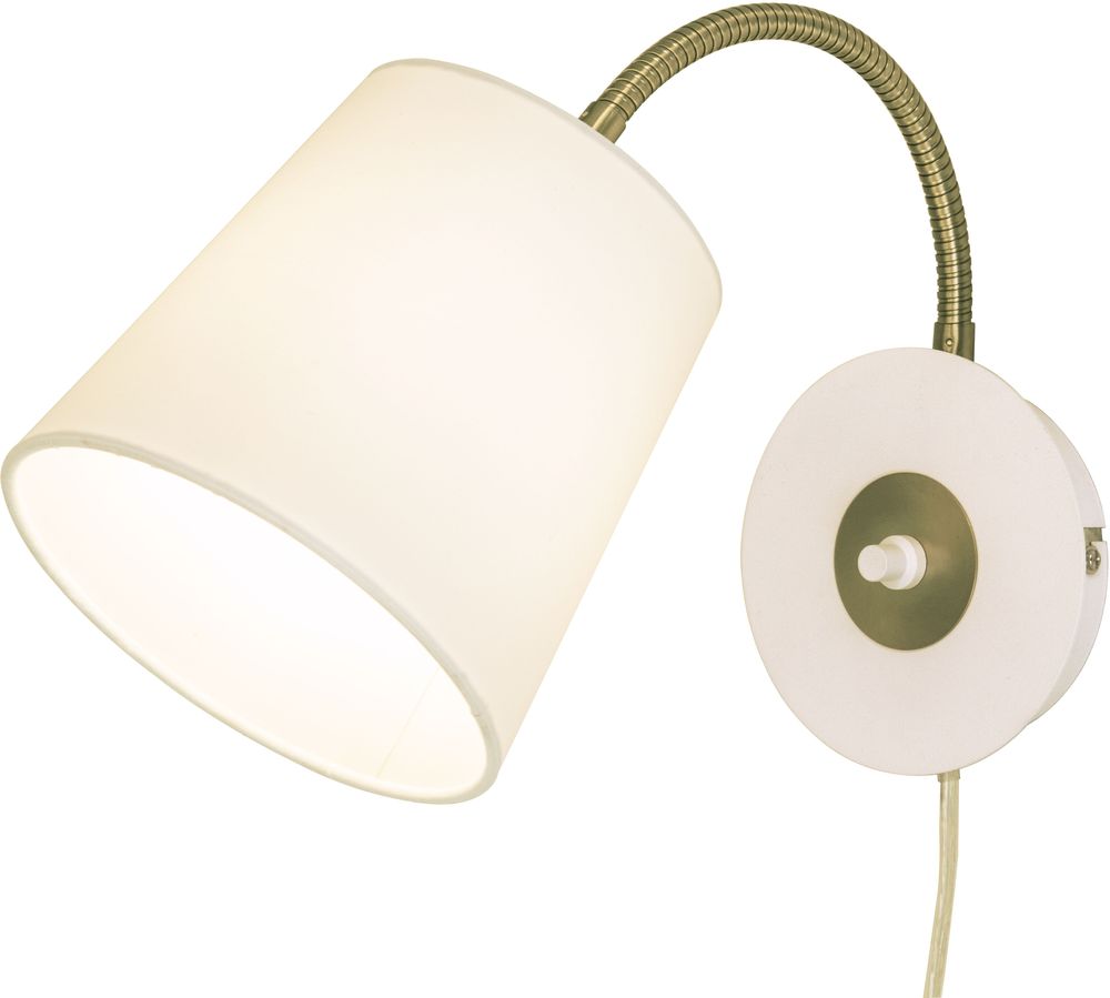 Wandlamp in wit en messing design. Eenvoudig aan de muur te monteren. Stroomschakelaar op de plaat.