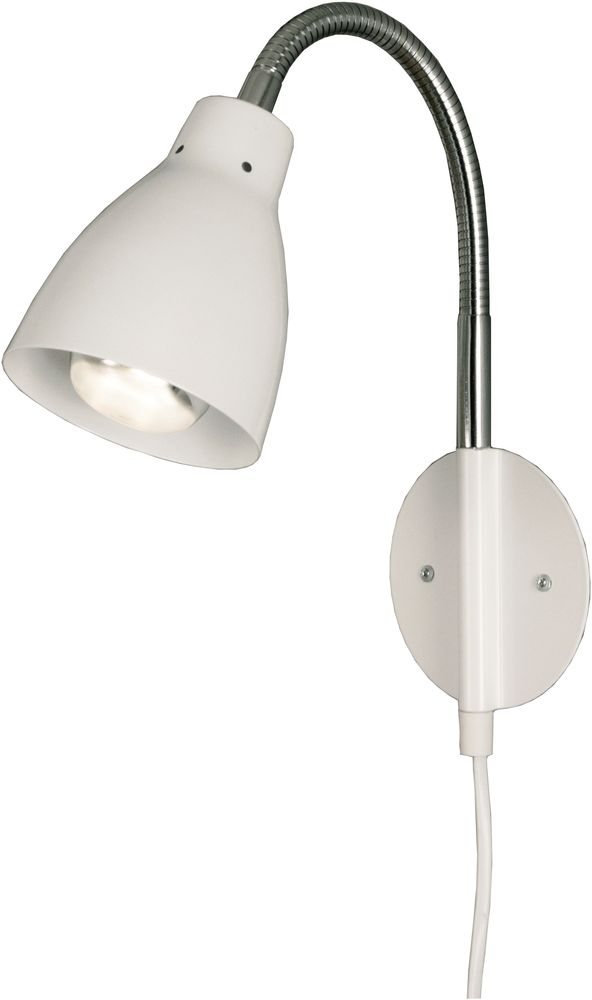Wandlamp in wit en verchroomd metaal. Makkelijk aan de muur te bevestigen.